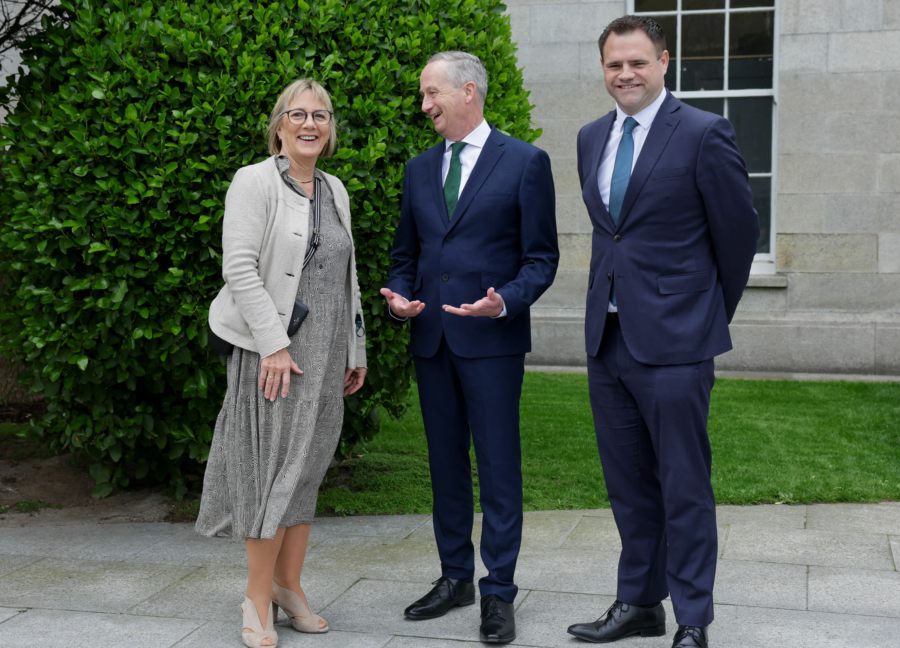 Photo: Leo Clancy (centre) and his predecessor Julie Sinnamon with minister Neale Richmond. (Pic: Maxwells)